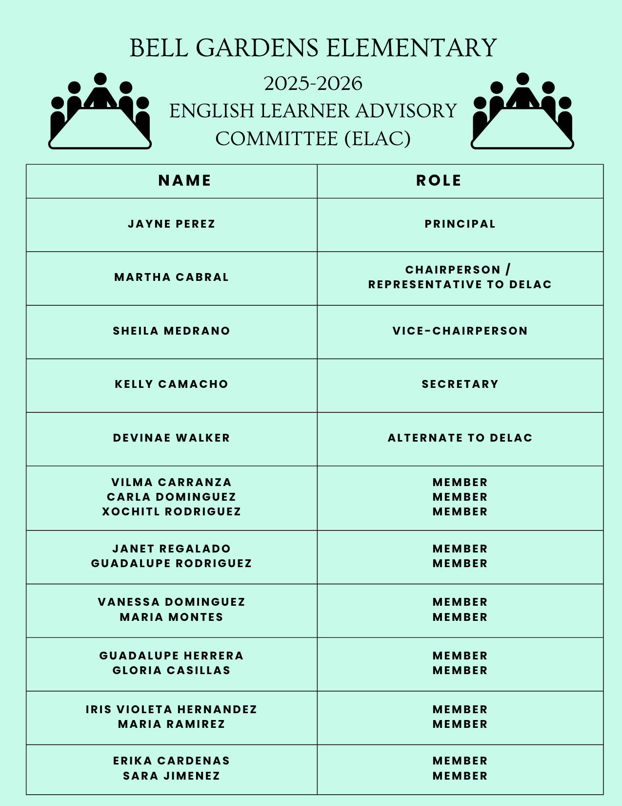 - ELAC shall have the opportunity to elect at least one member to the District English Learner Advisory Committee (DELAC).
